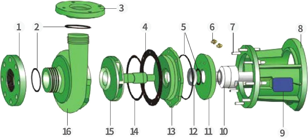 Fabrikken vår spesialiserer seg på å produsere korrosjonsbestandige sentrifugal- og selvsugende pumper i to materialer - PVDF og FRPP - i fire serier (FV, FP, FVZ, FPZ). PVDF-pumper er egnet for håndtering av sterke syrer, kraftige oksidanter, halogener, aromatiske hydrokarboner, alifatiske forbindelser og klorerte løsningsmidler, med et driftstemperaturområde på -40°C til 140°C. FRPP-pumper er ideelle for sterke alkalier så vel som generelle syrer, baser, salter og deres derivater, med et driftstemperaturområde på -40°C til 90°C. Pumpene drives vanligvis av energieffektive Y-type motorer. Eksplosjonssikre motorer kan leveres på forespørsel.