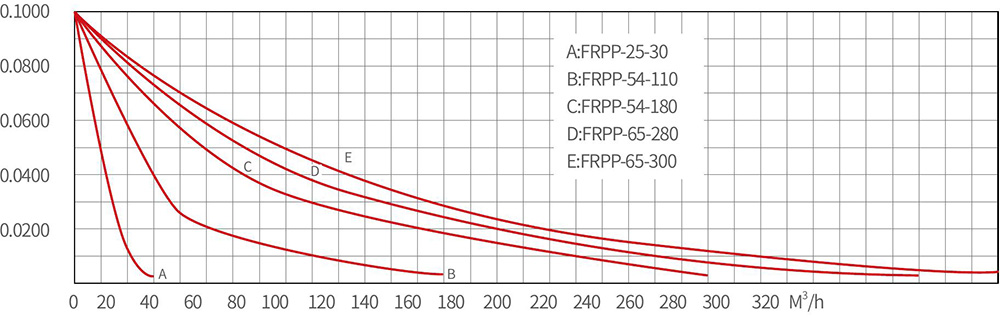 FRPP Type Spb vannstrålevakuumpumpe Målt parameter Ytelseskurve