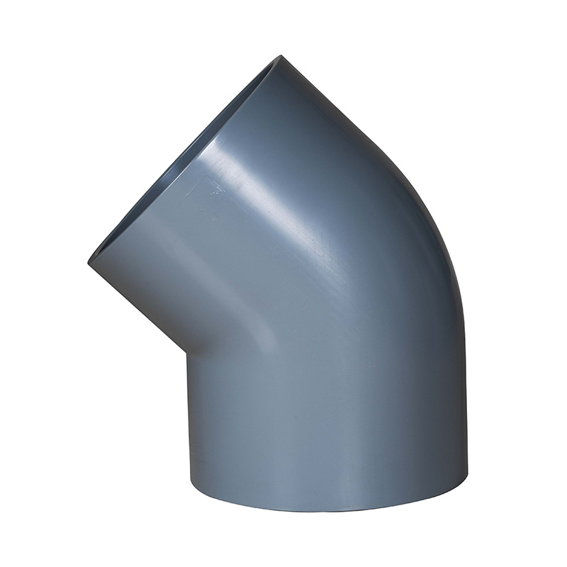 Ekstra slitesterk lysegrå PVC-C 45° albueformet, profesjonell standardstørrelse DN15-DN600 plastrørfittings, PVC-C konform 45° albue
