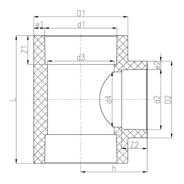 DN D1 D2 d1 d2 d3 d4 L h Z1 Z2 e1 e2