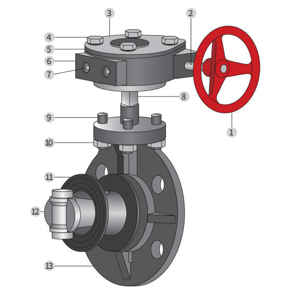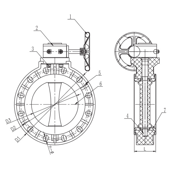 Snekkegir Type Butterfly Ventil Montering Detaljtegning