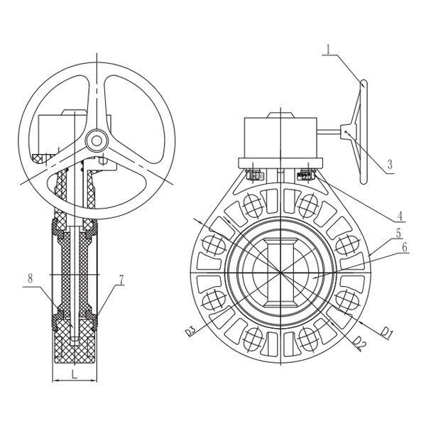 FRPP snekkegir spjeldventil manuell sentertetning myk tetning DN32-1000 industri- og husholdningshåndtaksventil i plast