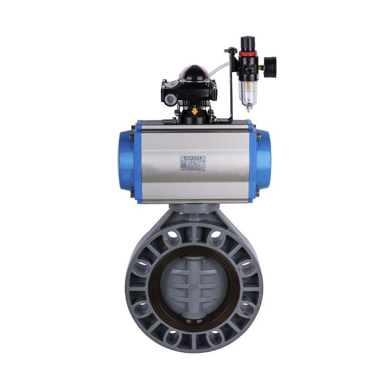 PVC-C pneumatisk automatisk spjeldventil, sentertetning, myk forsegling, DN32-1000, industri- og husholdningsspjeldventil i plast