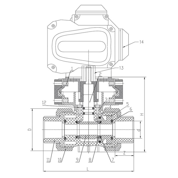 PVC-C D961F-10V Elektrisk dobbel union kuleventil DN15-100 GB Standard