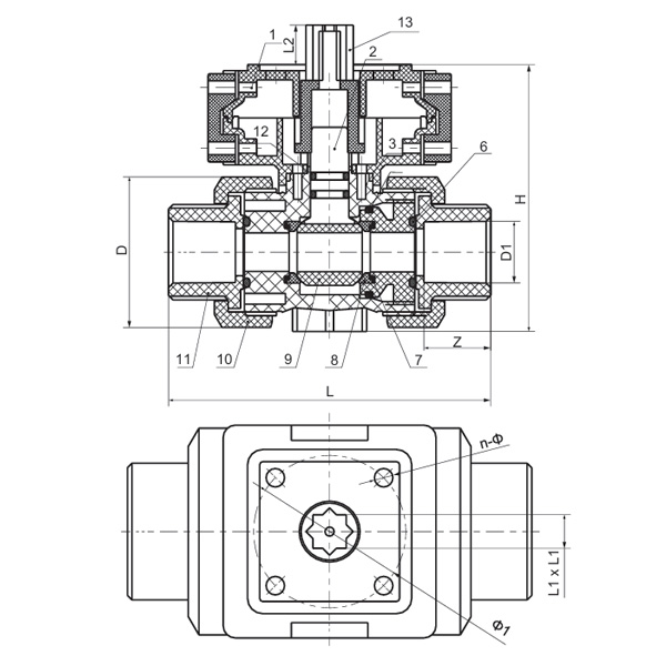 Spesifikasjon D(mm) D1(mm) L(mm) Z(mm) H(mm) Φ1(mm) L1XL1(mm) L2(mm) n-Φ1(mm)