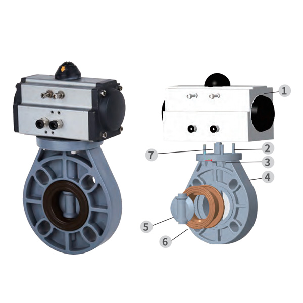PVDF pneumatisk automatisk spjeldventil, sentertetning myk tetning, DN40-1000, industri- og husholdningsplastventil, JIS-standard