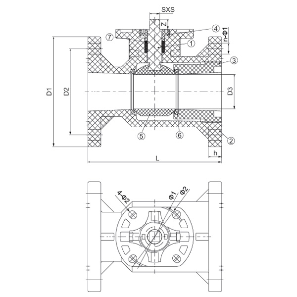 Spesifikasjon D1(mm) D2(mm) D3(mm) L(mm) h(mm) n-Φ1(mm) Φ1(mm) Φ2(mm) SXS(mm) 4-Φ2(mm) Z(mm)