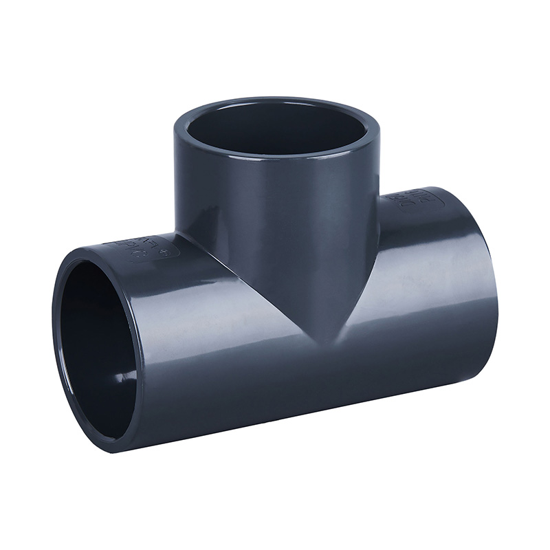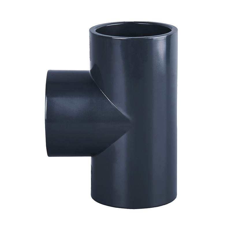 Fabrikkpris Mørkegrå PVC-U Tee Plastrørkopling med lik form DN15-DN600 Vannrørkopling Rett Tee-kontakt for drenering og sanitær